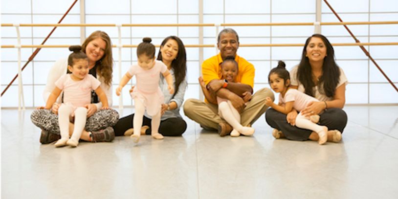 This class is available to children ages 18 months to 3 years and their caregiver. Moms, dads, grandparents, aunts, uncles, family friends, and more – if you and your child want to experience the joy of dancing, our Parents and Peeps class is the choice for you! Parents and Peeps is offered Saturdays from 10:00-10:45. Please see tuition schedule at bottom of page.